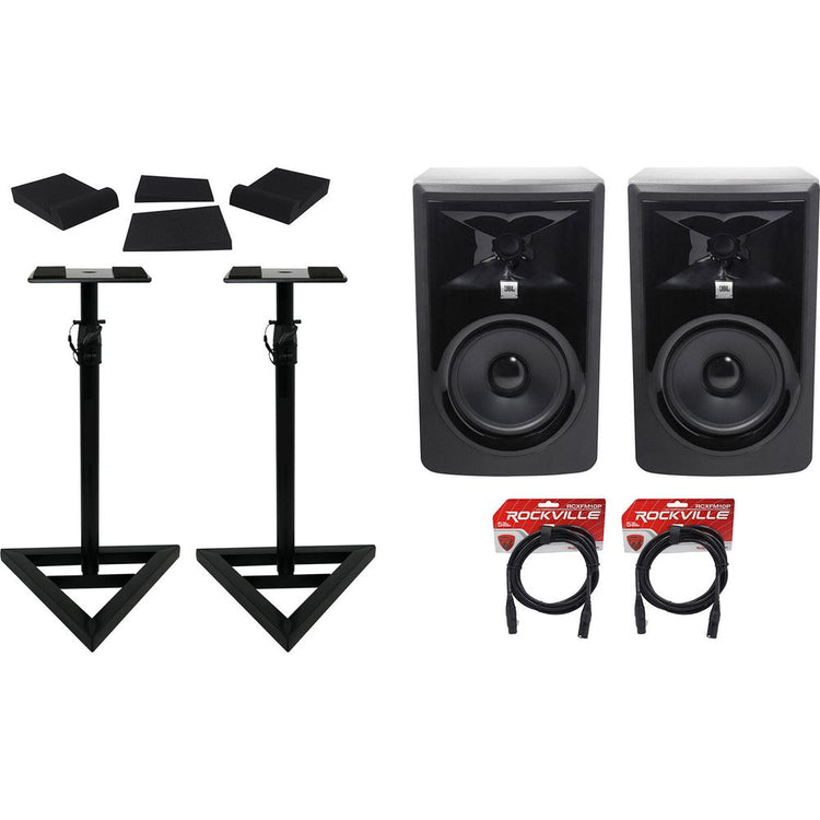 (2) JBL 306P MkII 6" Powered Studio Reference Monitors+Stands+Pads+XLR Cables
