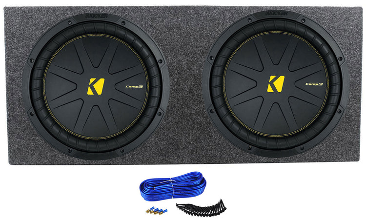 (2) Kicker 50CWCD124 CompC 12" DVC Subwoofers+Sealed Sub Box Enclosure CWCD124