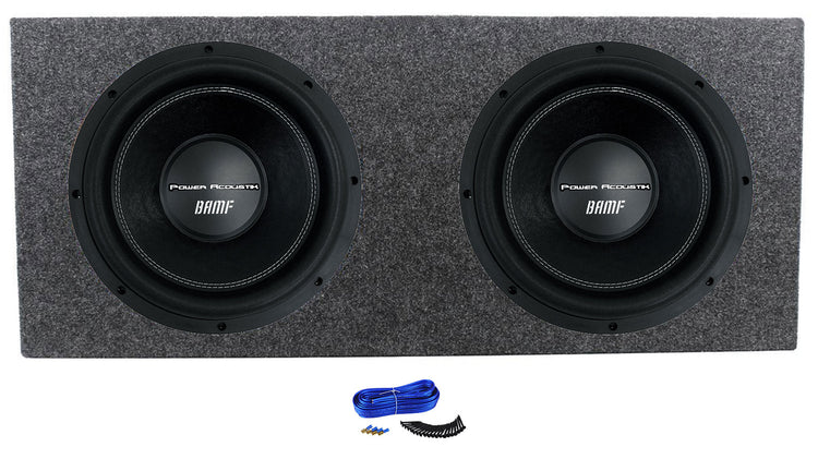 2) Power Acoustik BAMF-122 12" 3500w DVC Car Subwoofers+Sealed Sub Box Enclosure