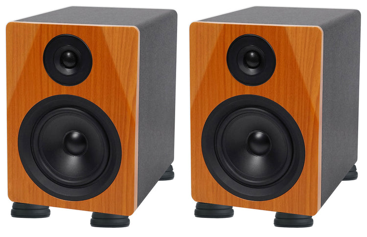 5.25" Powered Monitors, 2 Speakers, Aluminum/Silicone Isolation Feet, Classic Wood Finish