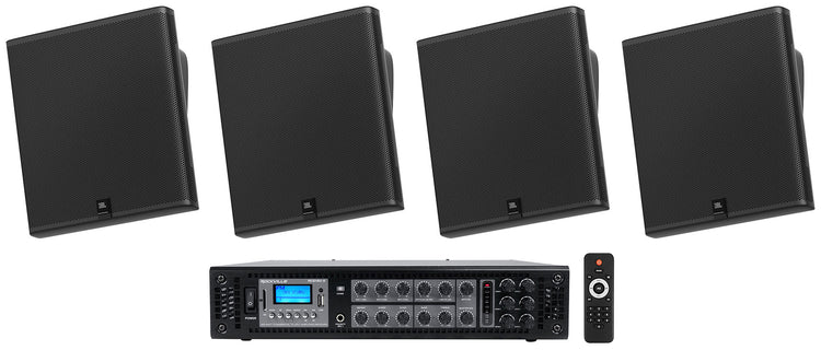 4) JBL SLP14/T-BK Sleek Low-Profile On Wall Mount 4" 70v Commercial Speakers+Amp
