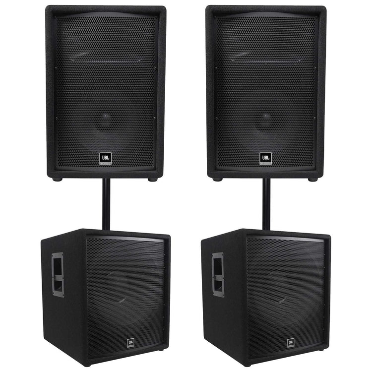 (2) JBL JRX212 1000w 12" 2-Way DJ P/A Speakers+(2) 18" 1400w Subwoofers Pro Subs