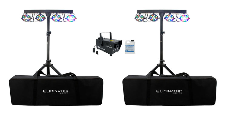 (2) Eliminator Mini Par Bar Light Systems w/4xPar Lights+Stand+Remote+Bag+Fogger