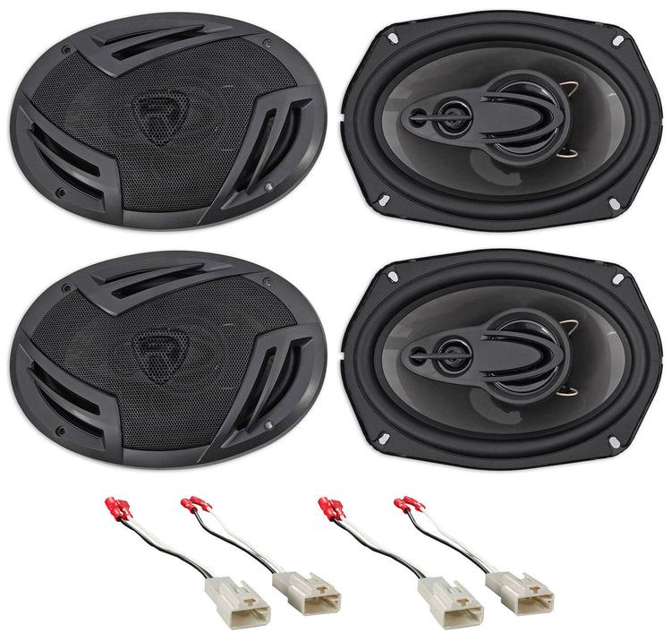 Two Pairs 6x9 4‑Way Speakers 440W RMS, Toyota Harnesses, Front/Rear Upgrade