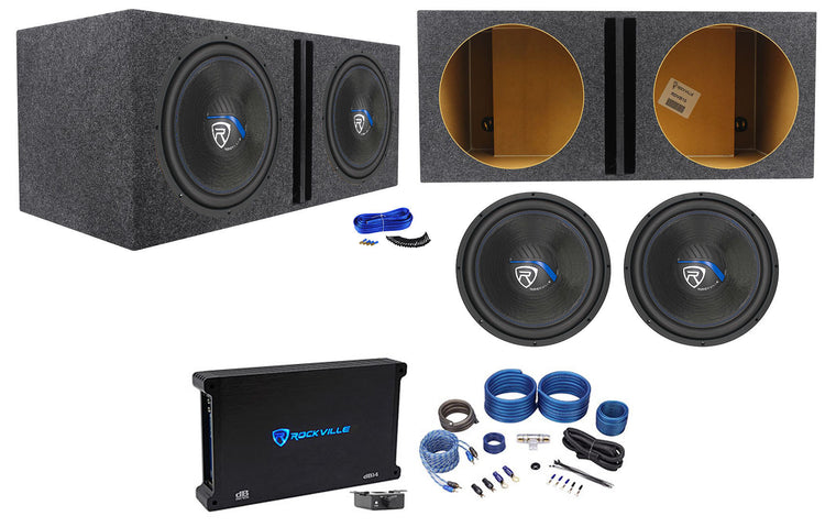 Rockville W15K5S4 2-Pack + dB14 Amp + RWK41 + RDVB15 Vented Bundle