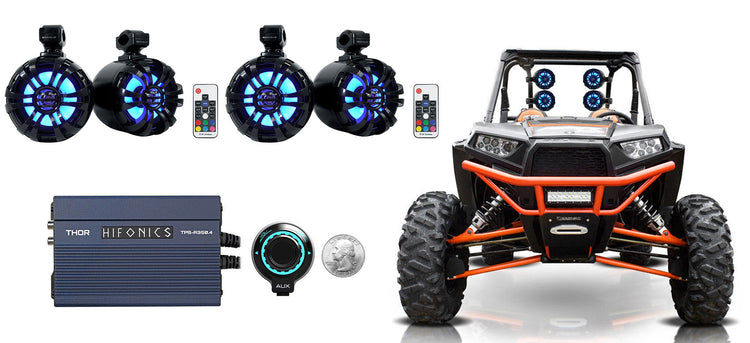 Bring spirited, high‑clarity sound to boats and UTVs with four LED‑lit tower speakers finished in black stainless steel. A compact 4‑channel marine amplifier drives crisp highs and assertive mid‑bass, while the IPX67 Bluetooth controller adds glove‑friendly volume and track control. Rotating aluminum clamps and sealed leads speed installation for a refined look that stands up to spray, sun, and vibration.