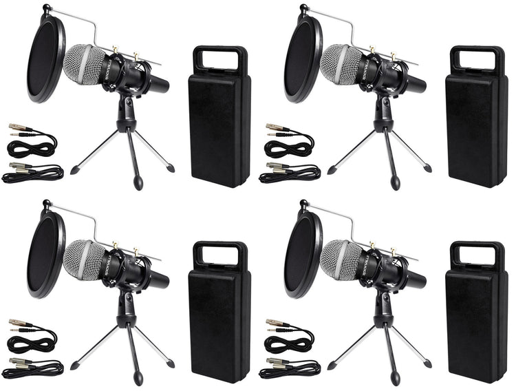 Dynamic Wired Mics 4-Pack, Includes Desktop Tripod Stands, Pop Filters, Shock Mounts