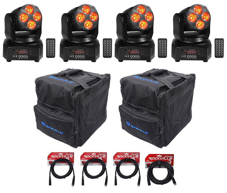 40W RGBW Moving Heads, 4 Fixtures, (2) Padded Bags, DMX Cables