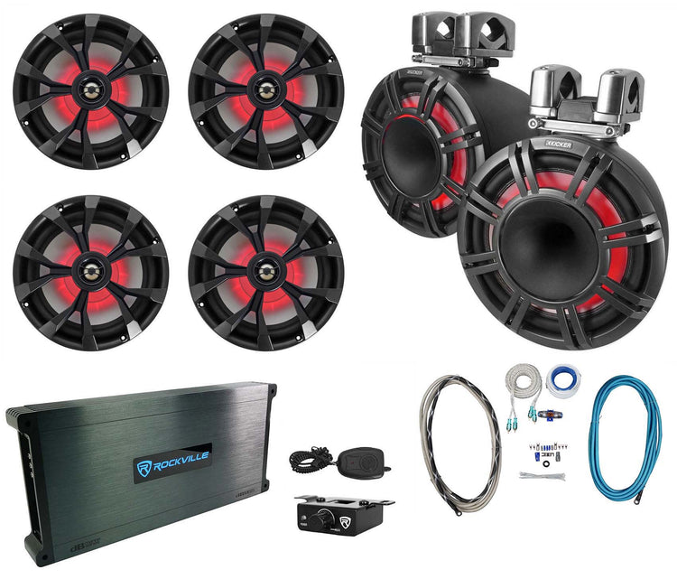 KICKER KMTC11 HLCD 11" Wakeboard Tower Speakers+4) 8" LED Speakers+6-Channel Amp