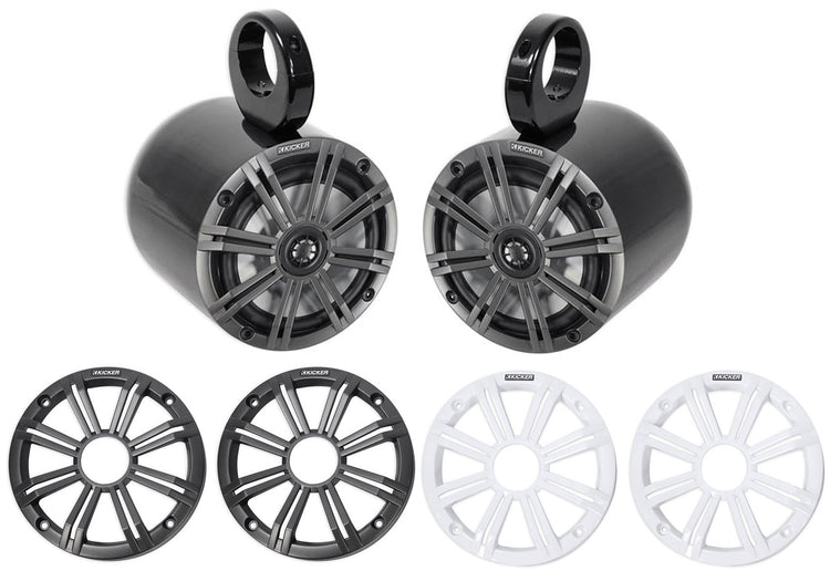 Pair KICKER 45KM654 6.5" 390 Watt Black Marine Wakeboard Tower Boat Speakers