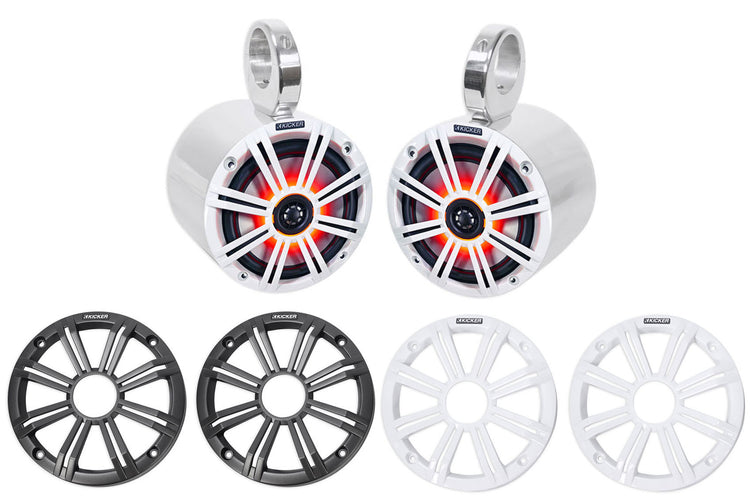 Pair KICKER 45KM654L 6.5" 390w Silver Marine Wakeboard Tower LED Boat Speakers