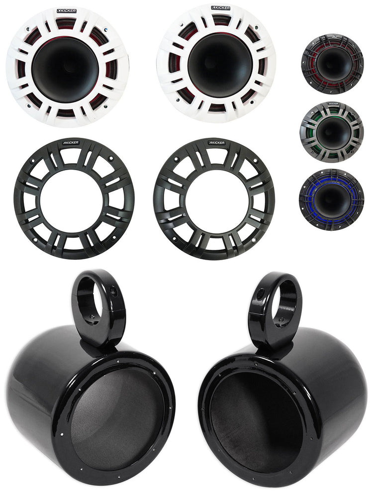 2) KICKER 48KMXL654 300w 6.5" Marine Black Wakeboard Tower Speakers w/LED KMXL65