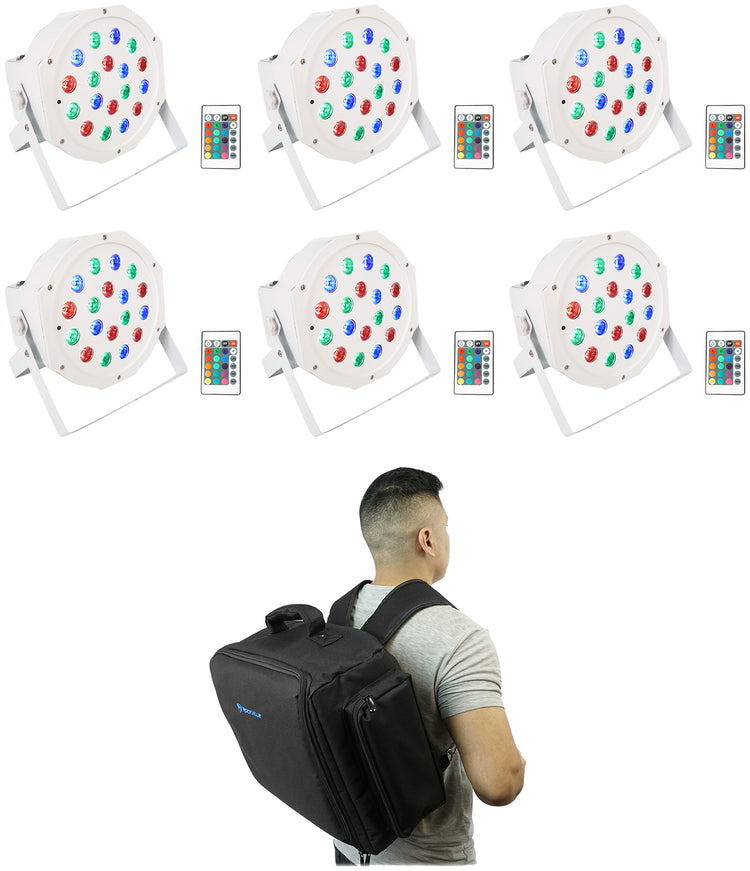 Rechargeable RGB Par Cans, 6-Pack, 7-CH DMX, Padded Backpack For Six