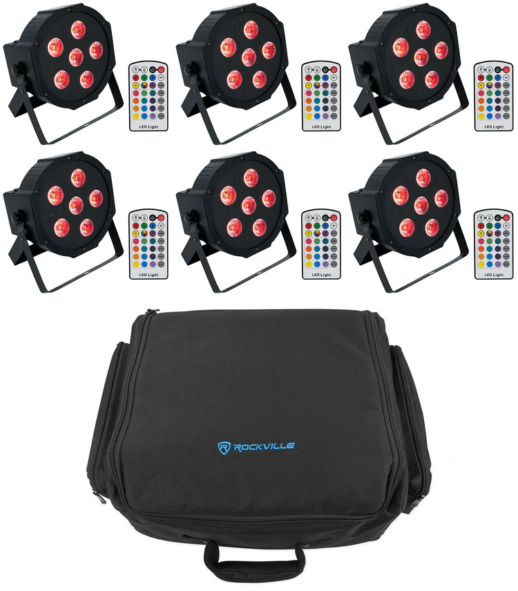 • (6) Rockville BATTERY PAR 6RF uplights with RF remotes