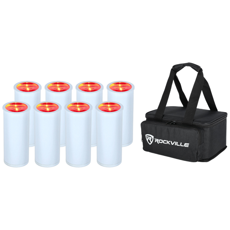 8 Pack MINI HALO DJ Wash Light Effect, Battery, Wireless DMX, RF + Bag