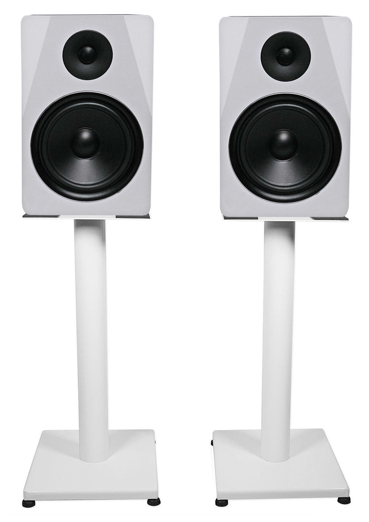 8" Bi-Amp Studio Monitors, White 21" Stands, Cable Management
