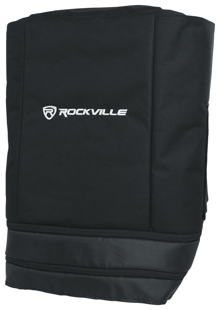 This padded cover protects and streamlines transport for 12" PA speakers with variable height systems. Adjustable with two extension zippers for 21.8", 25.8", or 28.9" settings, it fits speakers 18"–31" tall and up to 18" L x 15" W. Top zipper and Velcro panels allow trolley‑handle access, while side flaps reveal carry handles. Rainproof fabric, foam padding, and bottom Velcro straps keep the cover fitted and secure. Ideal for rolling cabinets, quick turnarounds, and post‑show protection—all in a clean, universal design.