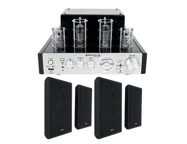 Tube Amp With Bluetooth, Slim Wall Speakers 4-Pack, Mounting Hardware Included