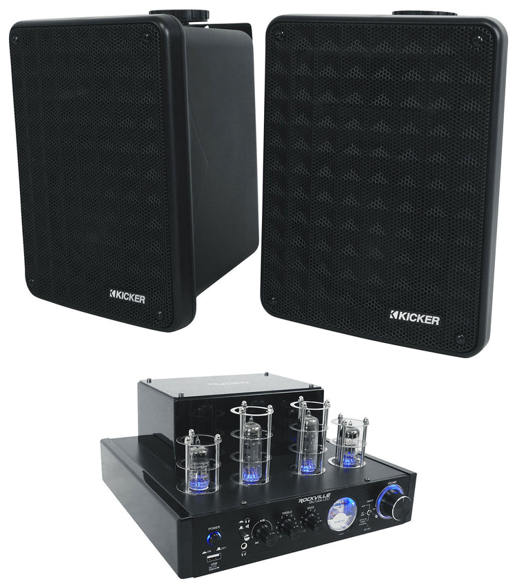 Bluetooth Tube Amplifier With HDMI/Optical, Pair 6.5" Indoor/Outdoor Speakers