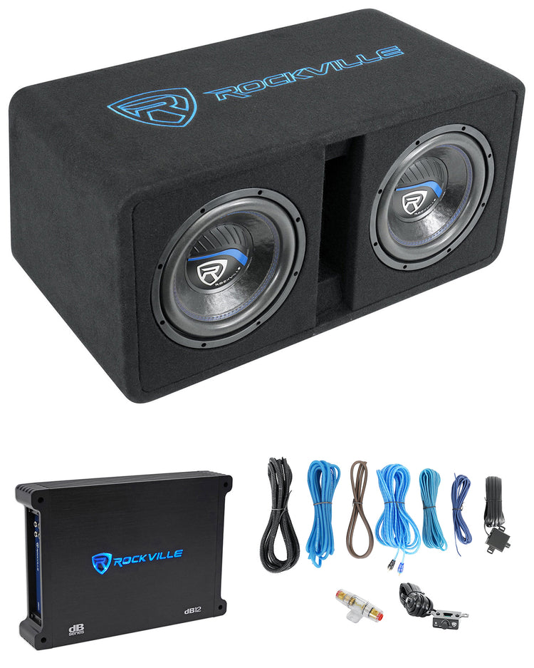 Car Audio Sub Amp & Enclosure Package, 2400W Peak, 2 Ohm, Dual 10" Subs, Mono Amp, Complete Wiring Kit