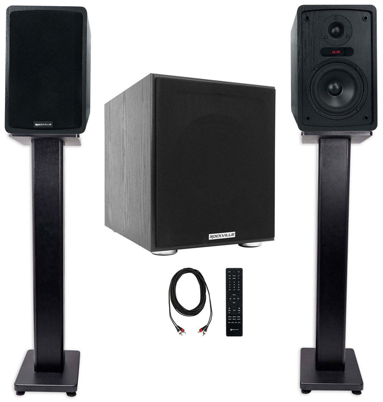 5.25" Powered Bookshelf Speakers, 200W RMS, With 8" Sub, Stands, 25' RCA Cable