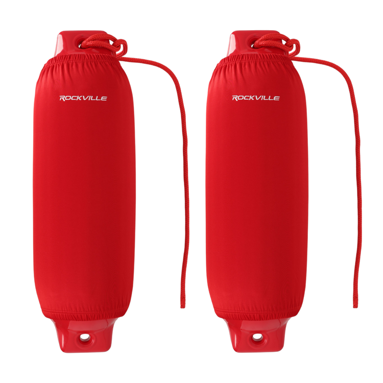 This 10"x30" red boat fender set pairs two PVC fenders with matching covers and lines, bringing eye-catching protection to 32–50' boats.