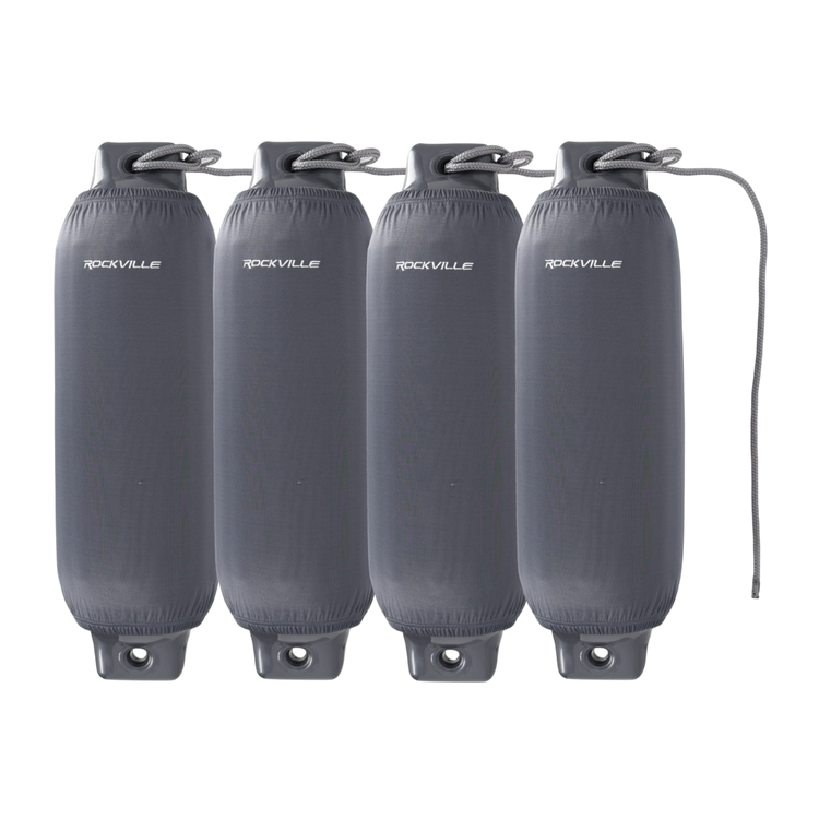 Four 8.5 x 27" grey PVC fenders, four covers, and four 10' braided lines arrive ready to rig, delivering coordinated protection for 25–40' boats.