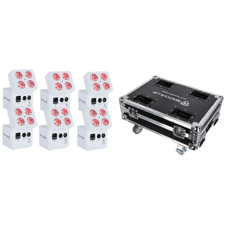This touring‑ready lighting pack pairs six ultra‑bright RGBWA+UV battery pars with a rugged charging road case. The unique flip‑angle head locks instantly for precise 15° beams, while aluminum housing and hidden LCD keep the look refined. Control via wireless DMX, redesigned IR remote, or iOS/Android app with 4 groups—perfect for fast room washes, dance floors, and stages. Big batteries run up to 18 hours on a single color, and selectable color wheels speed scene creation. The rolling case stores remotes and cables and charges all six at once.
