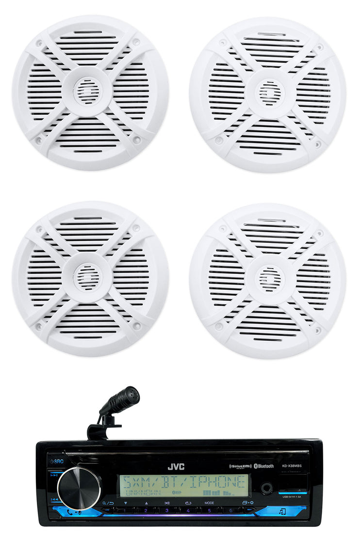 JVC KD-X38MBS 1-Din Marine Stereo Receiver w/Bluetooth/USB+(4) 6.5" Speakers