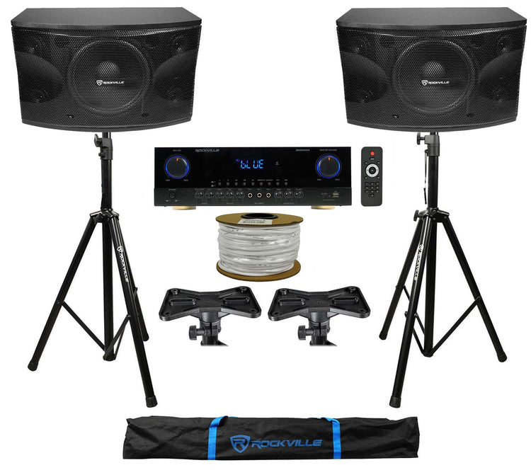 Karaoke System, 12" 3‑Way Speakers, 2000W Peak Amp, Includes Tripod Stands, Pole Adapters, 100' Wire