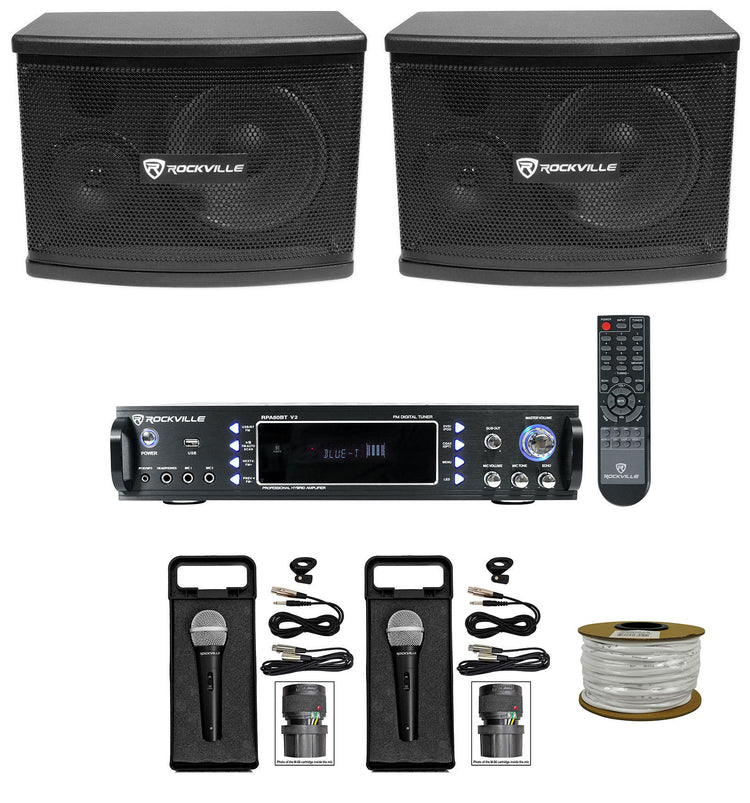 6.5" 2‑Way Karaoke Speakers, 1000W BT Receiver, Includes (2) Wired Mics, 100' 14 AWG Cable