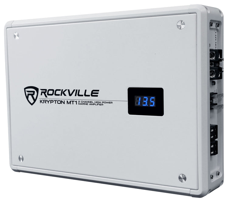 The KRYPTON MT1 is a marine-grade, class AB 2-channel amplifier designed to deliver powerful, clear sound in any aquatic environment. Crafted with rustproof aluminum and stainless steel, it withstands the harshest marine conditions while offering 1,600W peak and 400W Dyno-certified RMS. Its advanced crossover technology allows precise tuning for subwoofers, full-range, or midrange speakers. A digital voltage display, high-speed MOSFET power supply, and comprehensive protection circuitry provide reliability and peace of mind. The KRYPTON MT1 brings sophistication, durability, and superior audio performance to your boat or outdoor adventure.