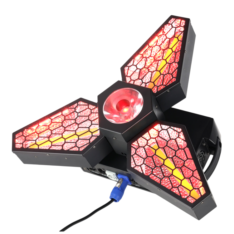 The rotating leaf design sweeps light across the room, creating dynamic movement that draws attention and energizes dance floors and stages.