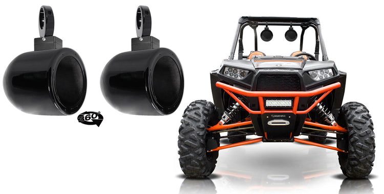 Designed for powersports and marine towers, this black aluminum pod and swivel clamp set projects clean, confident sound. The internal wiring and compact profile preserve your machine’s lines, while the 360° adjustment dials in coverage for riders and cabins alike. A premium, purpose‑built upgrade for rugged sound with refined style.