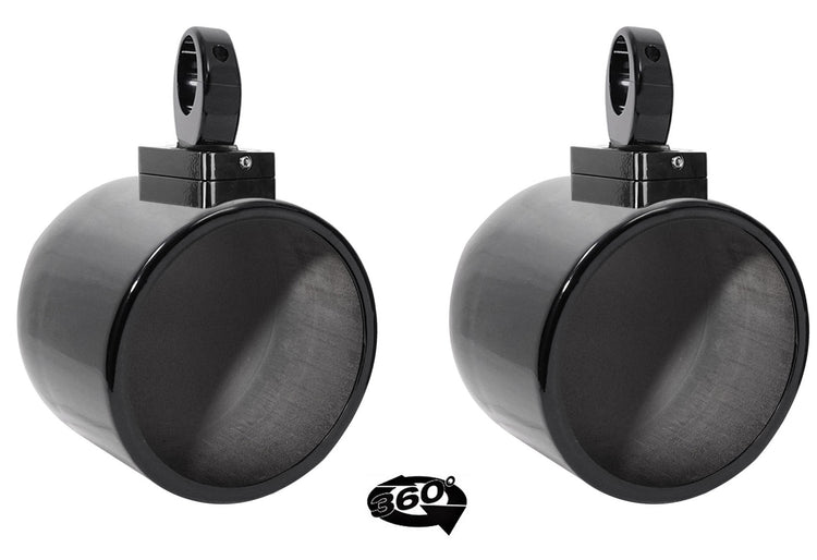 Built for life on the water, this bundle pairs 8" black aluminum wakeboard speaker pods with 360° surface/swivel clamps for precise aiming and clean installs. The internally wired, waterproof cans deliver optimized airspace for punchy, clear sound on boats and powersports towers. Universal clamps and multiple inserts fit 2"–2.5" bars, making setup straightforward for towers, rails, or decks. Ideal for riders who want marine‑ready durability, sleek aesthetics, and adjustable coverage from dock to open water.