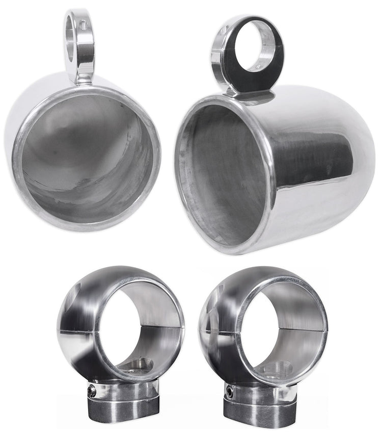 8" Wakeboard Speaker Pods, Silver Finish, Includes 360° Quick-Release Swivel Clamps, Inserts, Hardware