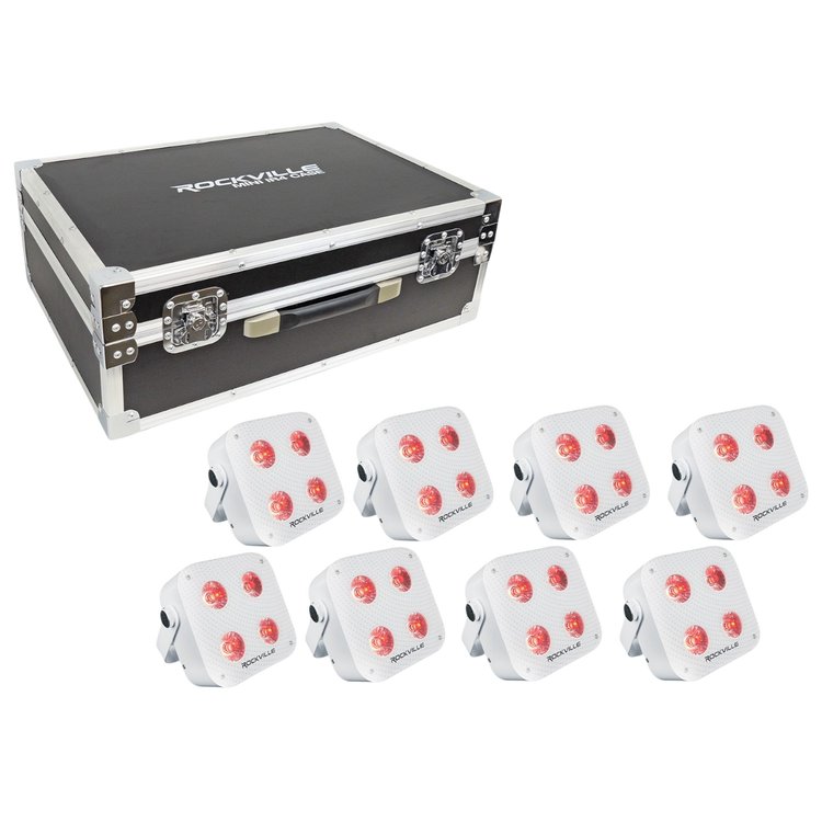 - Includes 8 battery-powered RGBWA+UV lights
