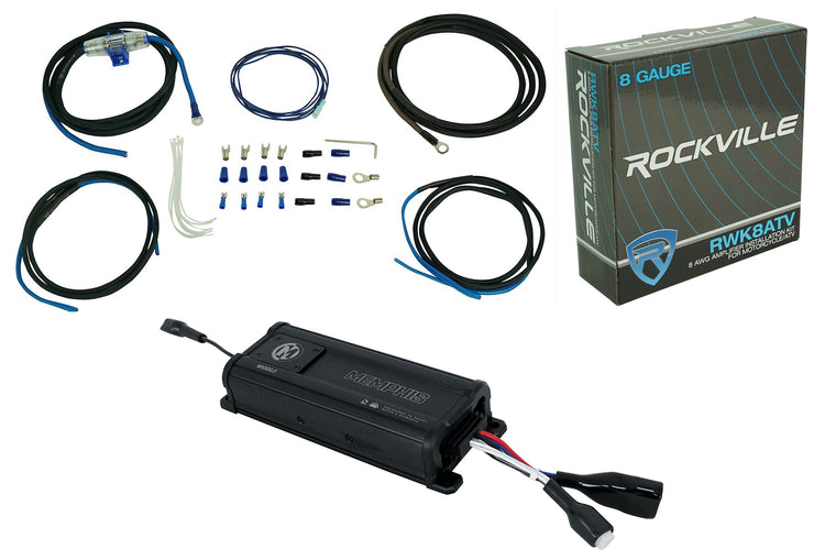 The RWK8ATV 8 AWG Amplifier Installation Kit delivers pure, reliable power for motorcycle, ATV, or UTV audio systems. With 100% OFC cables, pre-terminated ring terminals, and a complete set of accessories, this kit ensures secure connections and peak performance in any environment.