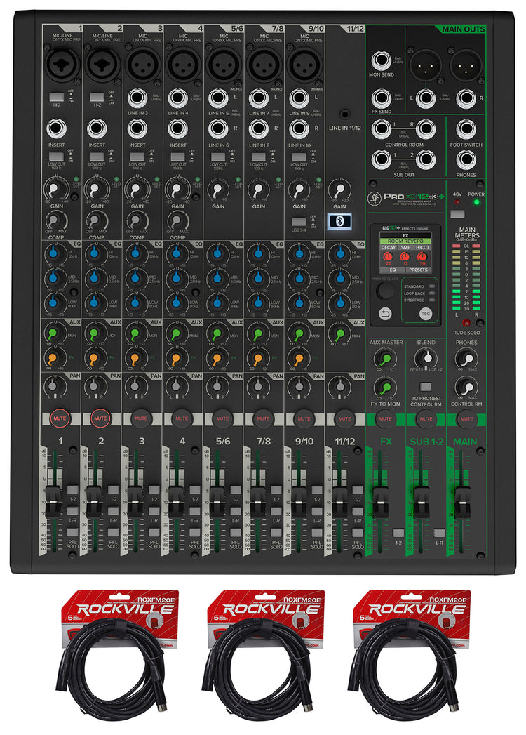 Mackie ProFX12v3+ 12-Ch. Mixer w/Enhanced FX/USB Recording/Bluetooth+XLR Cables