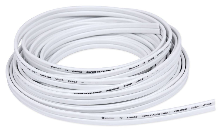 This 500' spool of 14 AWG marine speaker wire delivers reliable signal transfer on boats and in outdoor systems. Fine-strand oxygen-free copper with aluminum composite promotes clarity, bass response, and dynamic range, while a flat, braided Super-Flex jacket routes cleanly through tight runs. The white, marine-grade PVC resists UV, salt, oil, and abrasion, with UL1426 compliance for confident installs. Waterproof insulation and corrosion resistance support longevity in harsh conditions, and the low-impedance construction helps keep amplifiers and speakers performing at their best on the water or in custom automotive builds.