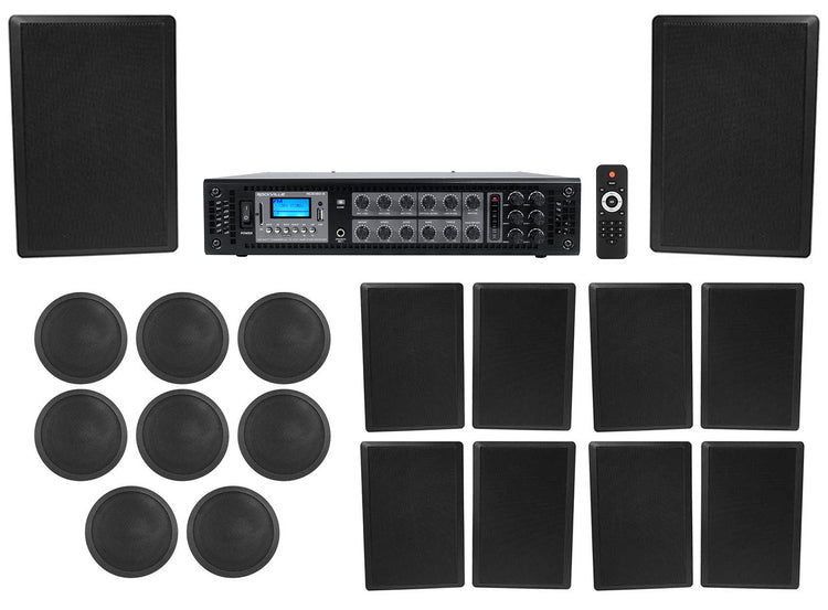 70V Ceiling and Wall Audio System, 6-Zone 180W, (8) 6" Ceiling, (10) Slim Wall Speakers