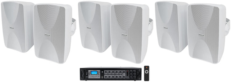 Commercial Wall Speaker System, IPX55 6.5", powers 6 speakers, includes 6‑zone 180W amp, white finish