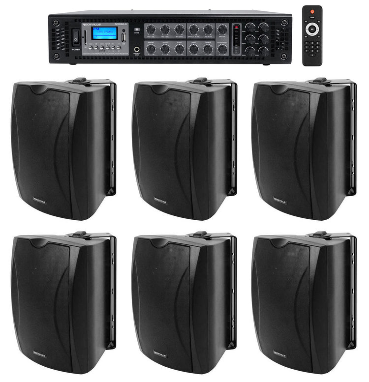 6-Zone 180W 70V System, Supports 6 Zones, Includes RCS180-6, (6) WET-6B Black Speakers