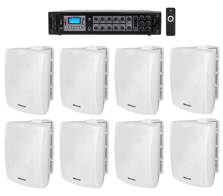 Commercial Wall Speaker System, IPX55 5.25", powers 8 speakers, includes 6‑zone 180W amp, white finish