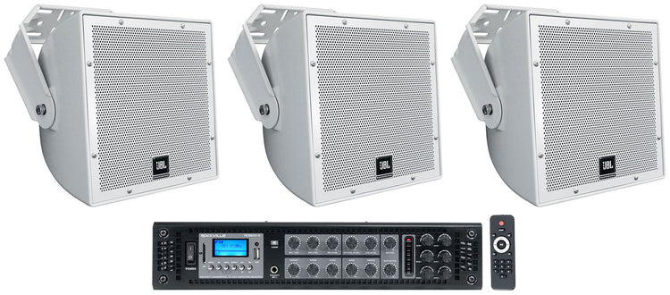 8" IP56 Surface Speakers, 6-Zone 650W Capacity, Includes Amp, (3) Black Speakers
