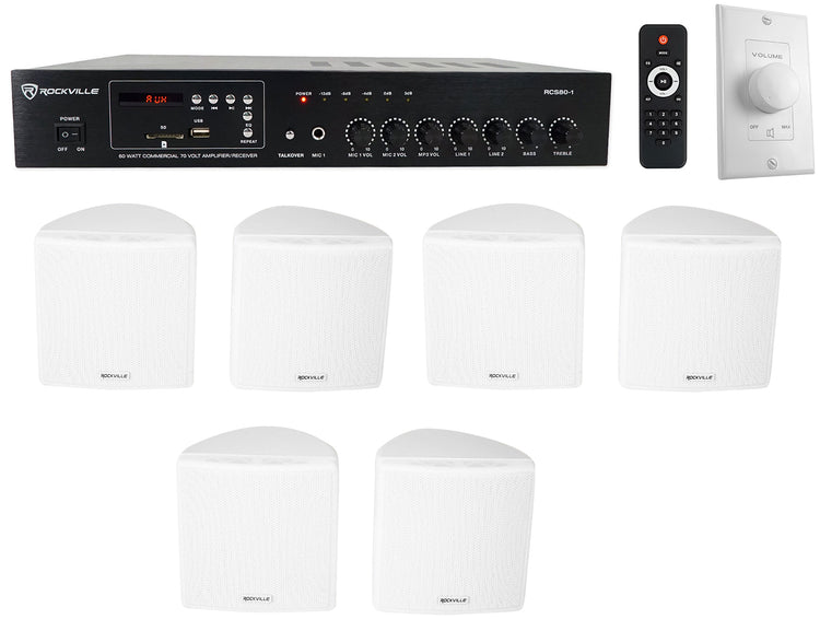 Create an inviting soundscape across multiple rooms with a minimalist, white-on-white system. The RCS80‑1 offers dependable 70V/100V power, Bluetooth streaming, and mic paging, while six compact 3.5" speakers provide even, articulate coverage. A matching 100W wall controller simplifies daily level adjustments. A tasteful, reliable choice for hospitality and retail.