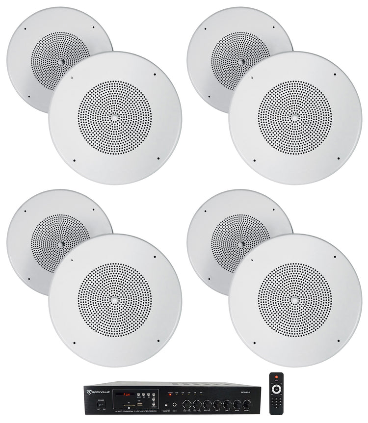 RCS80-1 60W Amp 4-Pack + MC80 8" Metal Ceiling Speakers Bundle