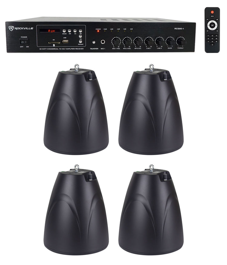 RCS80-1 60W Amp 4-Pack + PEN-65T Black Pendant Speakers Bundle