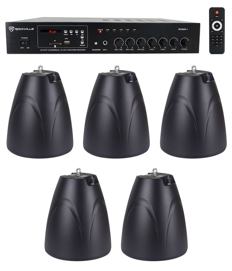 RCS80-1 60W Amp 5-Pack + PEN-65T Black Pendant Speakers Bundle