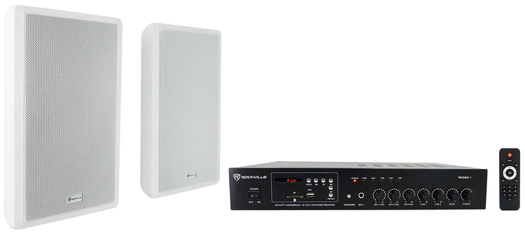 RCS80-1 60W Amplifier + RockSlim 70W White Wall Speakers 2-Pack Bundle